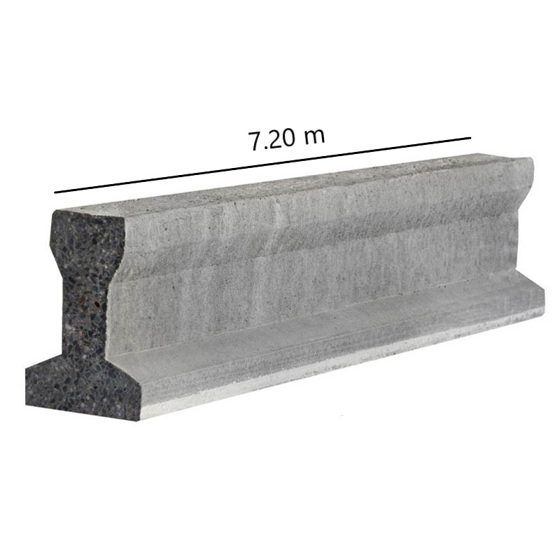 Elemento rígido de hormigón de doble T para la construcción, de 7.20 metros de largo. Color Gris. Utilizada para forjados unidireccionales formados por vigueta y bovedilla.